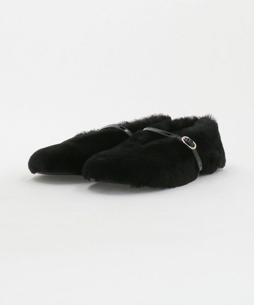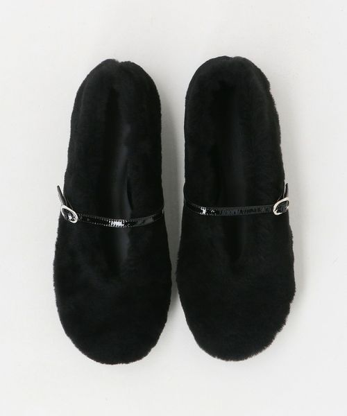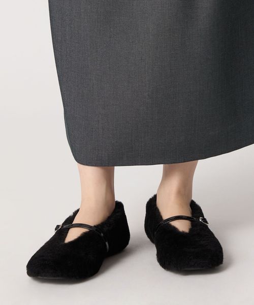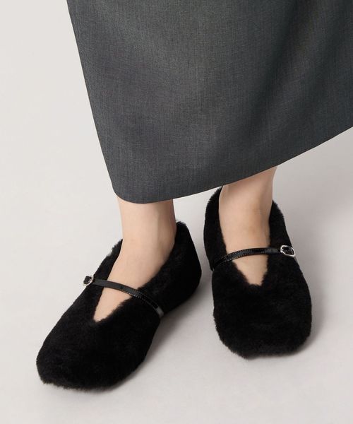 もこもことした素材感が目をひくフラットシューズ。