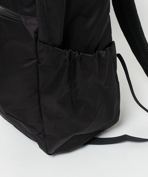 内側にはノートパソコンが入るポケット、サイドには水筒や傘を収納できるポケット、他にも複数ポケットを配し、荷物の仕分けが便利。