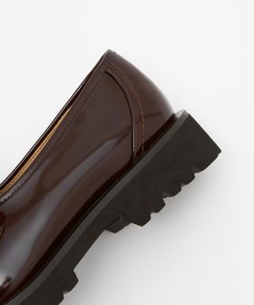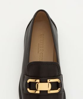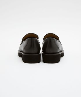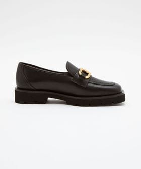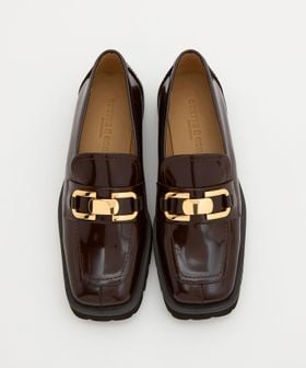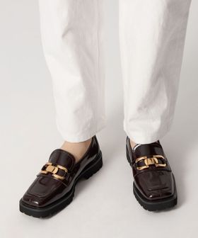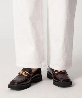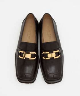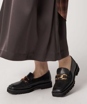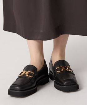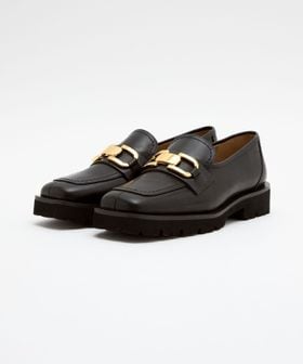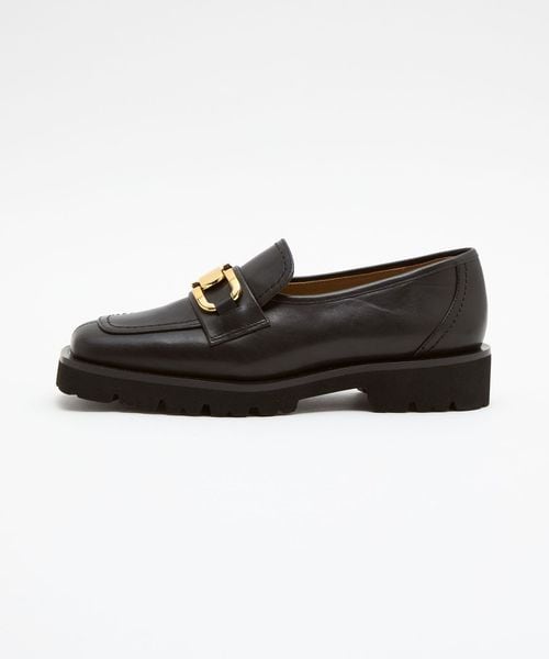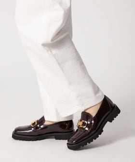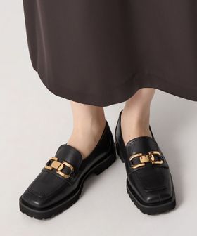 大ぶりのビットが目を惹く、甲を深く覆ったローファータイプのフラットシューズ。