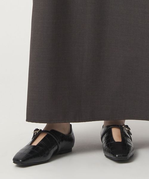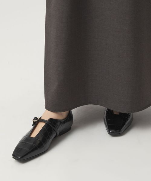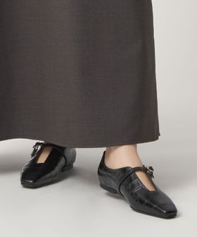 <FABIO RUSCONI>型押しがモードな印象のストラップフラットシューズ