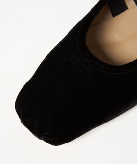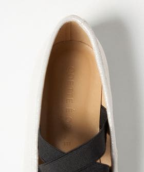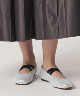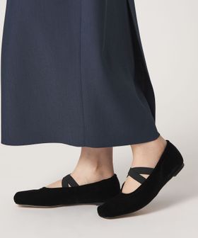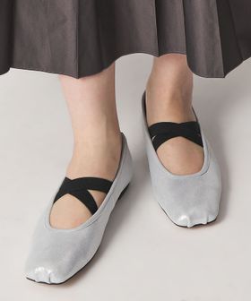 つま先のくしゅっとしたデザインやクロスのゴムベルトなど、カジュアル感のあるディティールを組み合わせ、きれいめな雰囲気とバランス良く仕上げました。