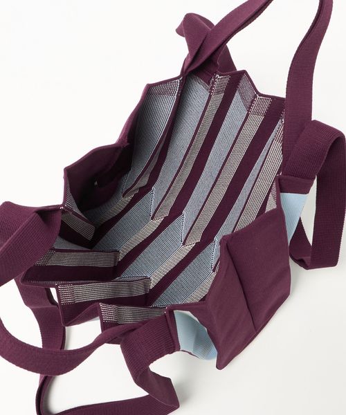 パープル、ライトブルー、ホワイトの組み合わせがシンプルなコーディネートにも映えるデザイン。