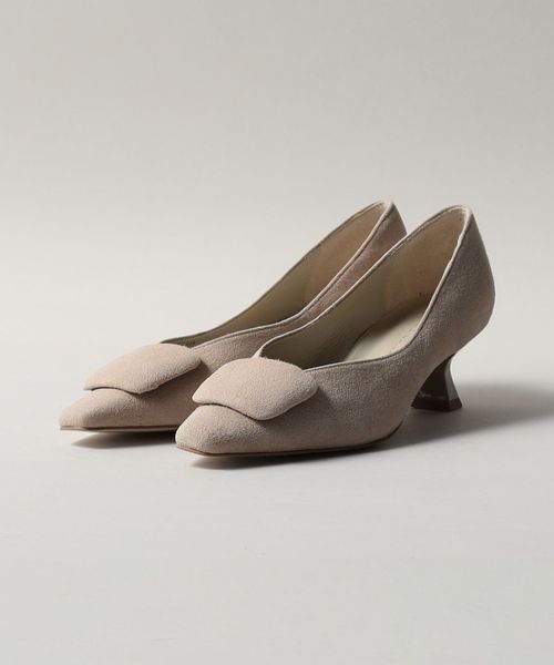 上品さと女性らしさを演出するオーナメント付きのパンプス