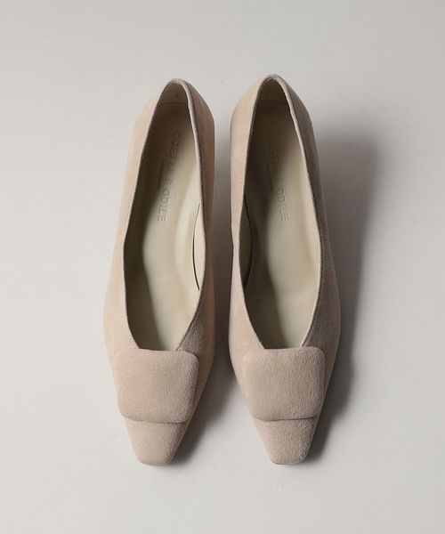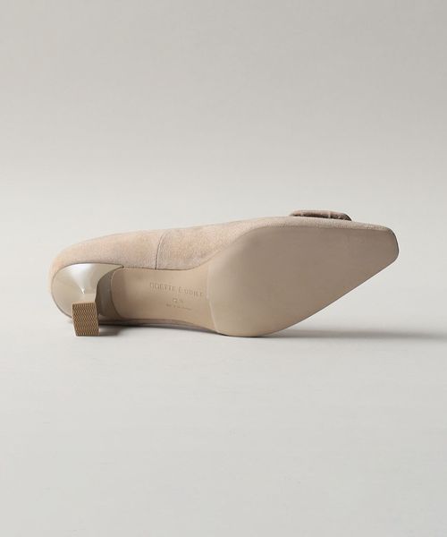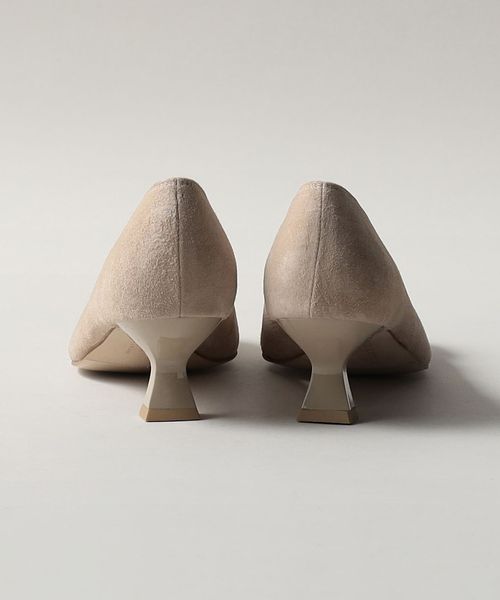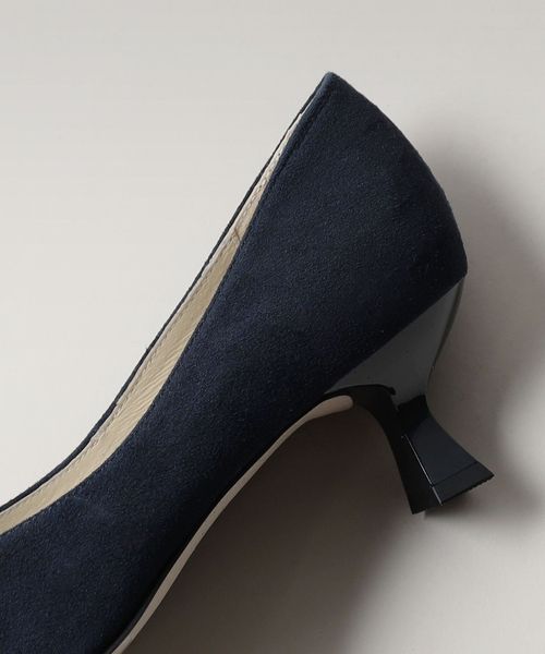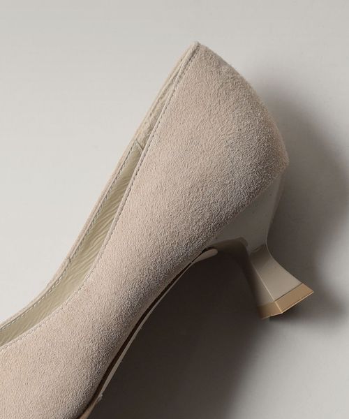 ベージュとネイビーは使い勝手のよいベーシックカラーの起毛素材にアッパー同色の塗装ヒールを組み合わせ、ツヤ感をプラスしました。