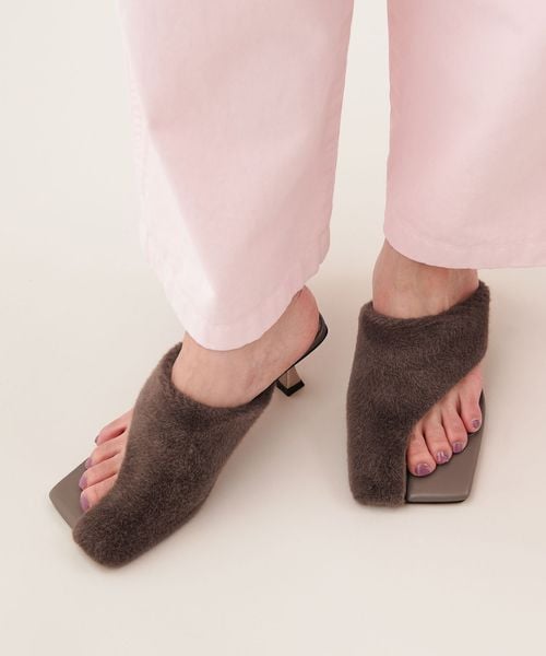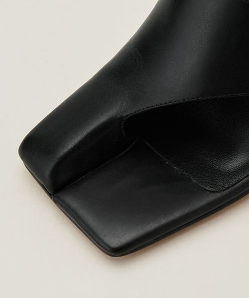 ミュールタイプで脱ぎ履きしやすく、シンプルながらも個性が光る一足です。