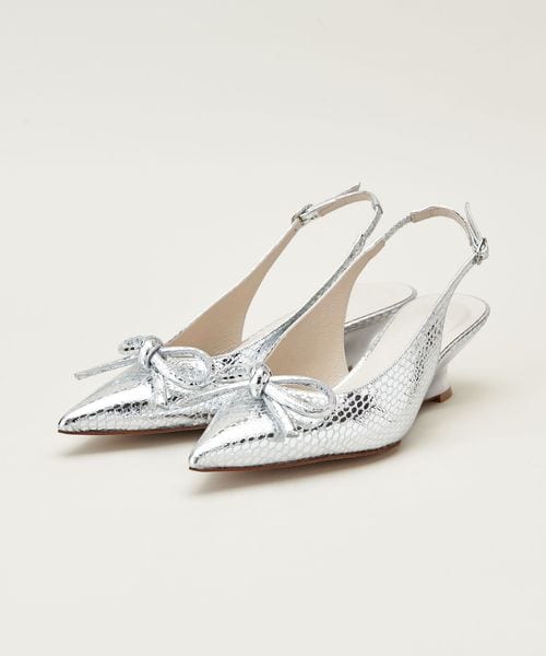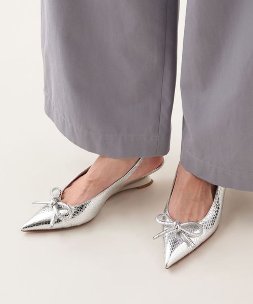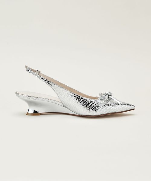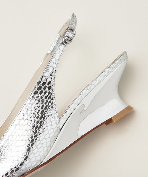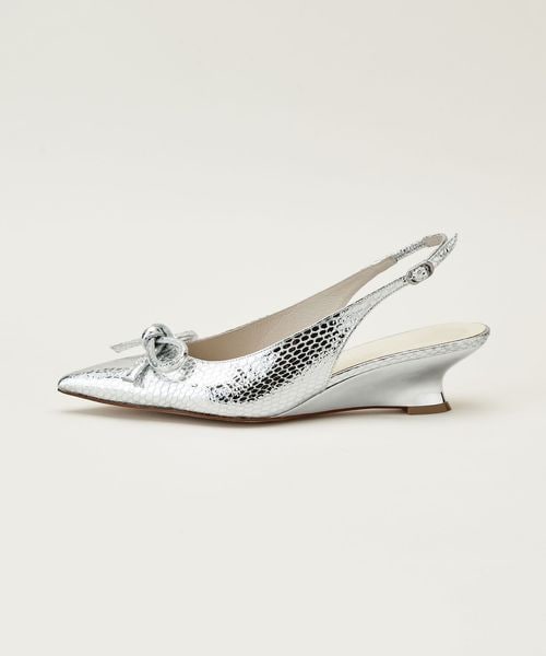 華奢なポインテッドトゥと曲線美が際立つウェッジヒールが見事に調和したデザインです。