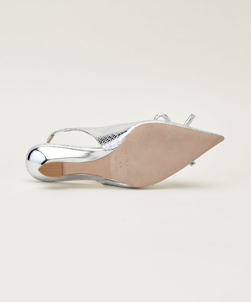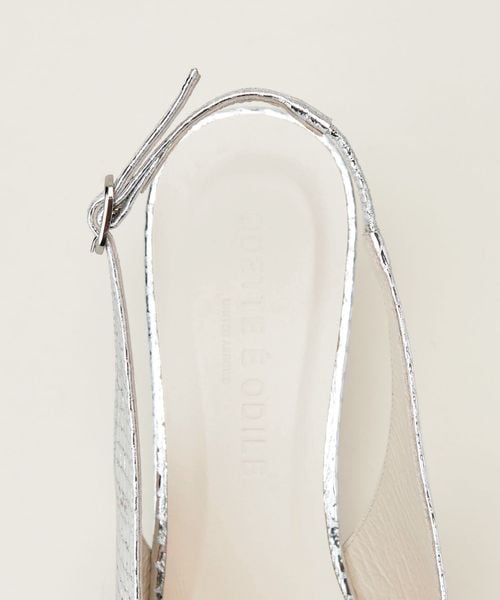 ウェッジヒールにはアッパーと調和するメッキ塗装を施し、華やかさをプラスしています。
