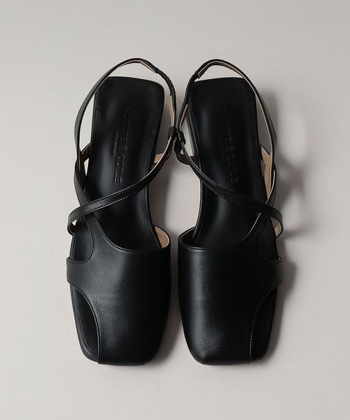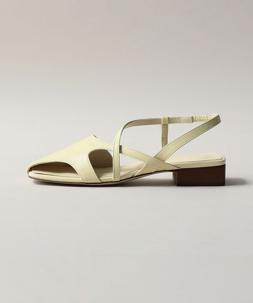 つま先をカバーしつつも外側に一部抜け感をつくり、流れるようなベルトデザインで軽やかさを演出。