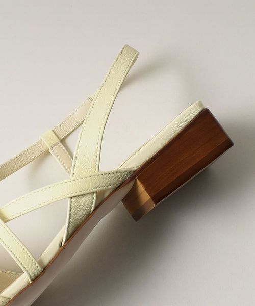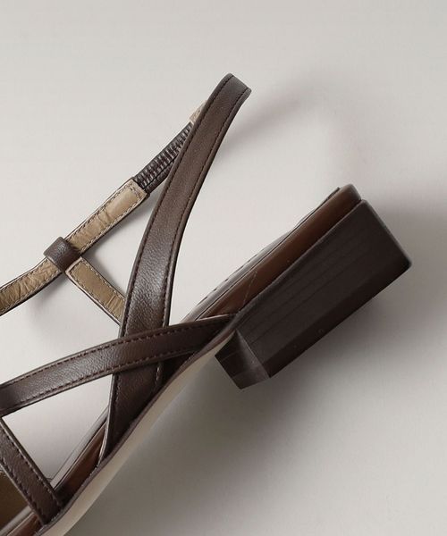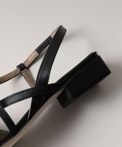 甲部分でクロスする細いバックベルトに、2.5cmほどのブロックヒールが存在感を放ちます。