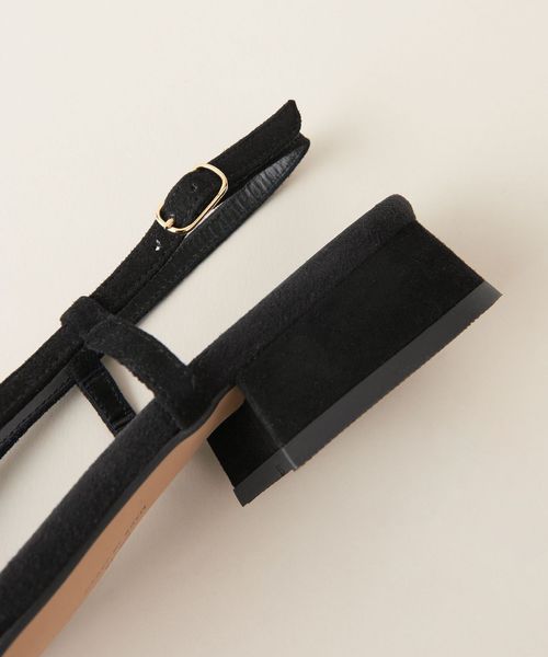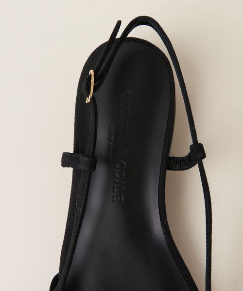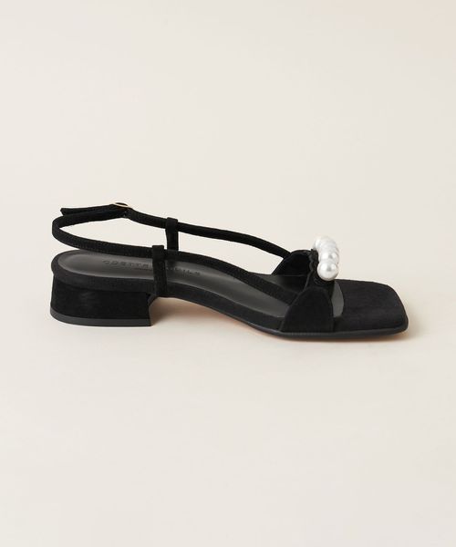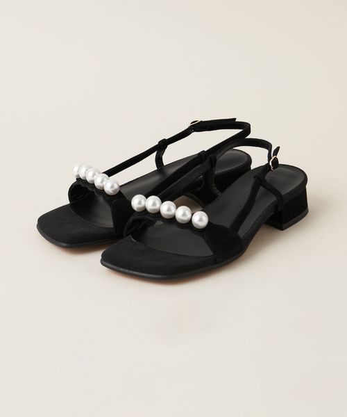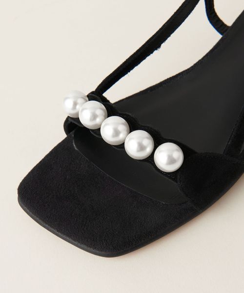 ブラックはスエード素材でマットな質感。パール調飾りが際立つエレガントな仕上がり。