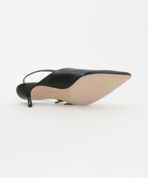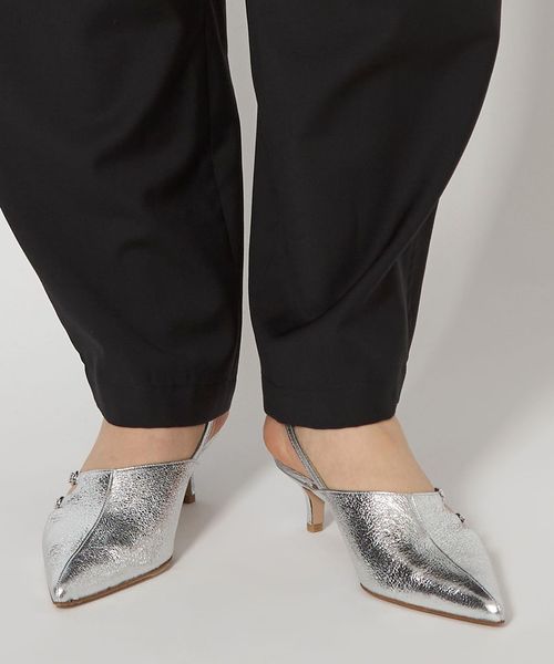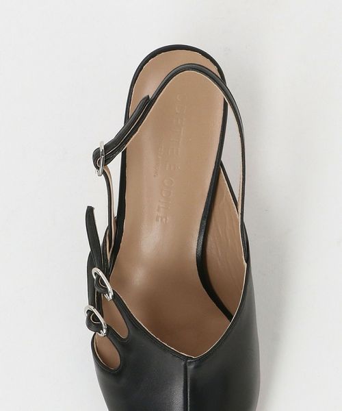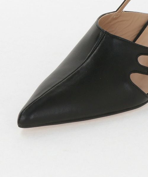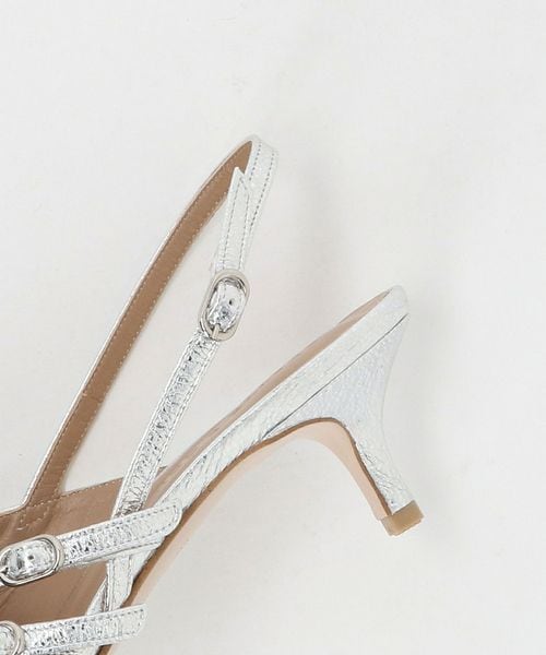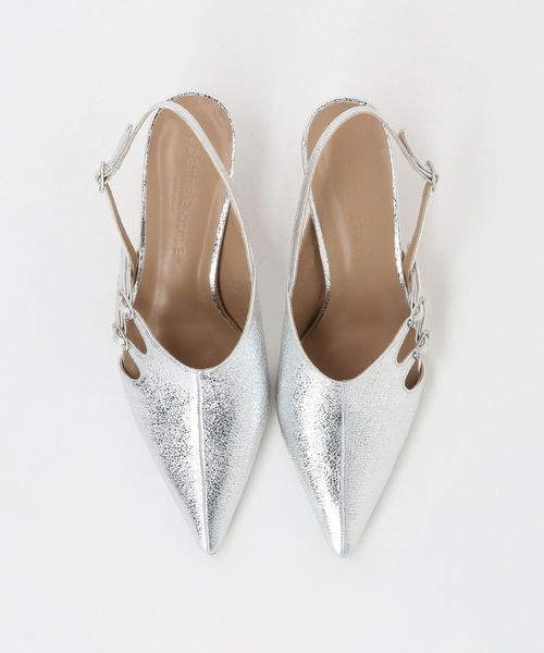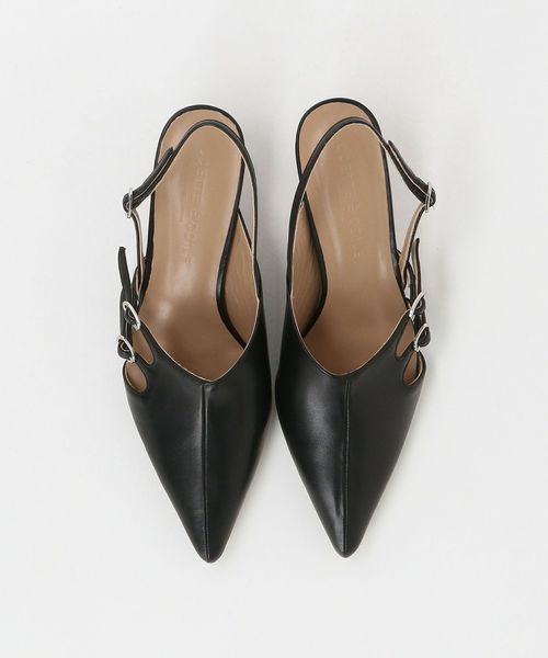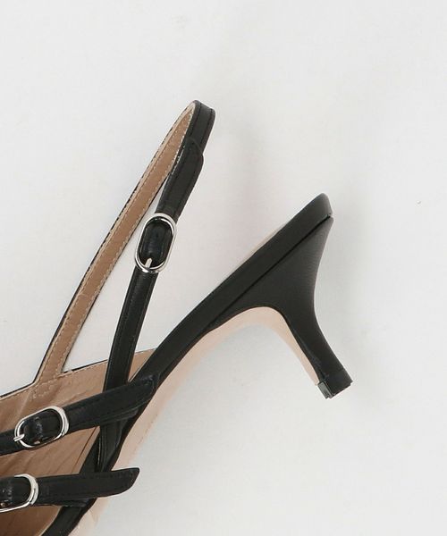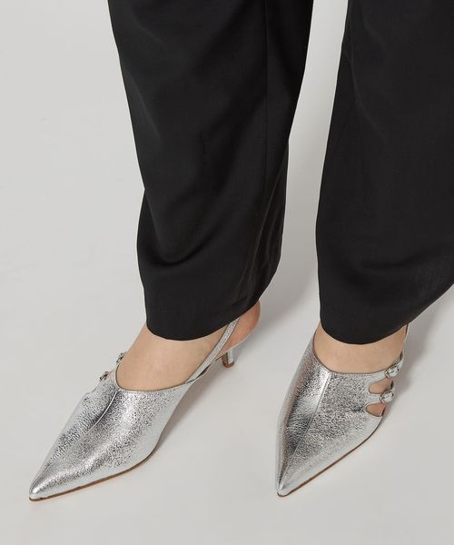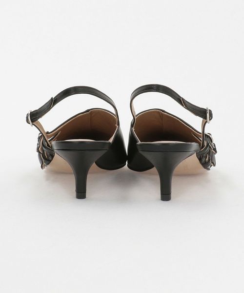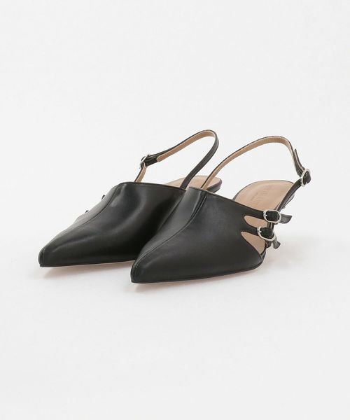 アシンメトリーのアッパーデザインが印象的なバックベルトパンプス。