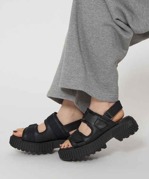 アウトドア感のあるツーリングデザインに、前後で調整可能なベルトが足をしっかりとホールドしれくれるため快適な履き心地を実現。