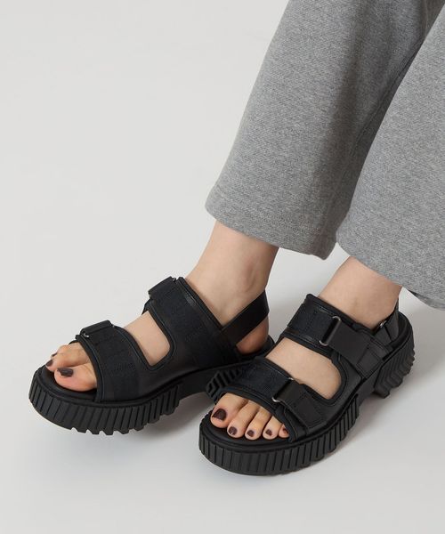 カジュアルなデザインながらも、ワントーンのクリーンな印象のカラーが魅力のサンダルです。