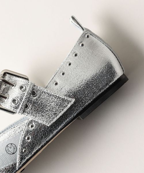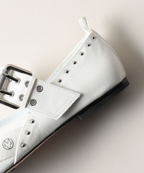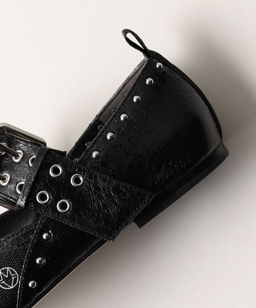 太めの甲ベルトやサイドに施されたスタッズが、大人のカジュアルスタイルをモードでトレンド感のある印象へと導きます。