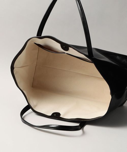 シンプルなデザインと薄手で軽いボディ、ハンドル幅も華奢なため、きれいめからモードな装いまで馴染む一品。