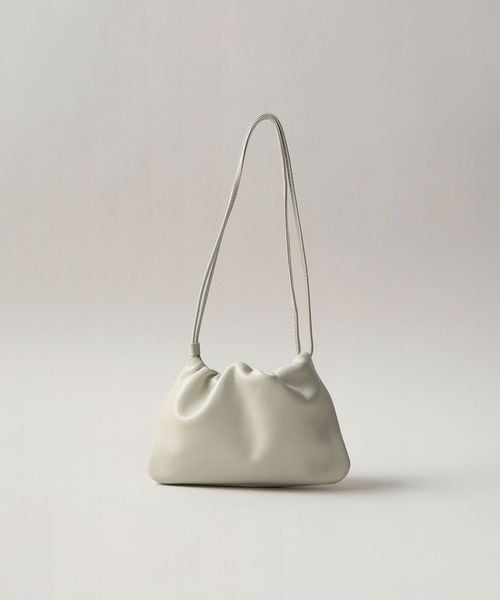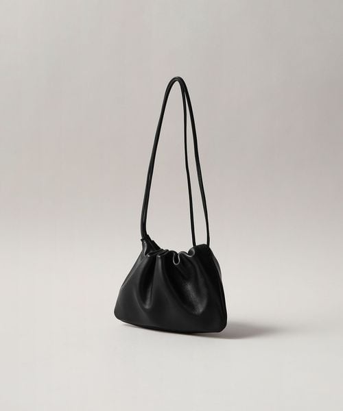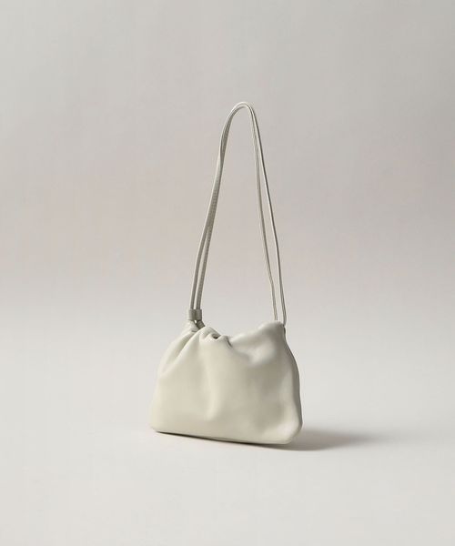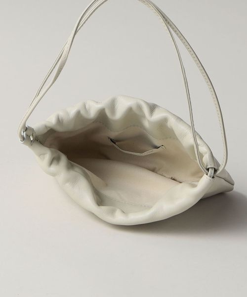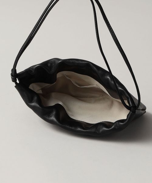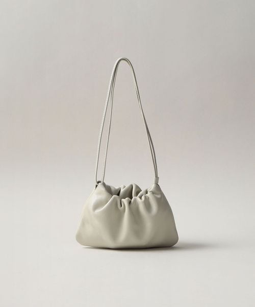 シンプルでクリーンなシルエットの巾着型ショルダーバッグ。