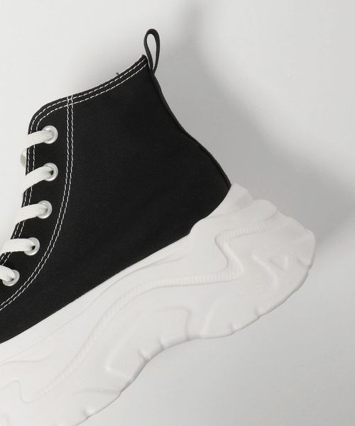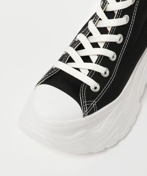2000年代のランニングシューズをモチーフにオールスターらしさを残しながらも、厚底ソール部分の大胆なデザインが特徴的な一足。