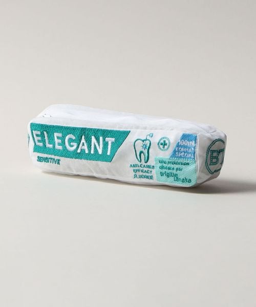 歯磨き粉のボックスをモチーフにしたユニークなデザインのポーチです。