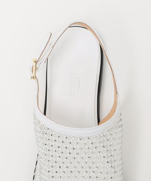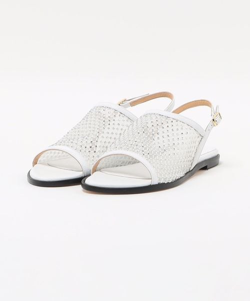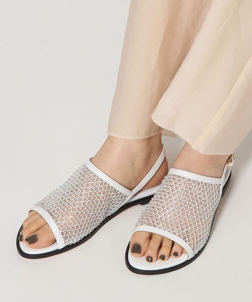 フィッシュネット素材のホワイトカラーにビジューを施したODETTE E ODILE別注のサンダル。