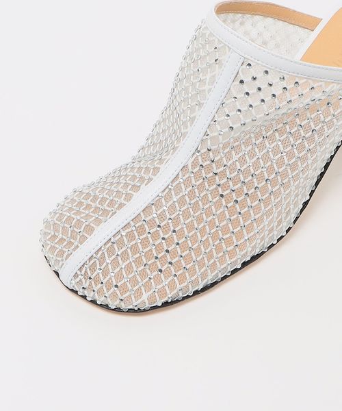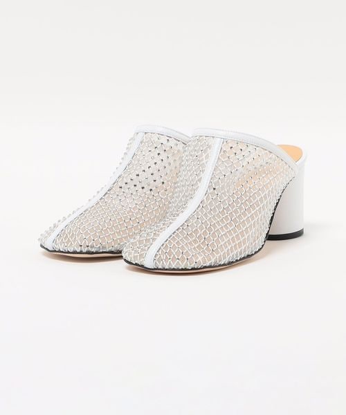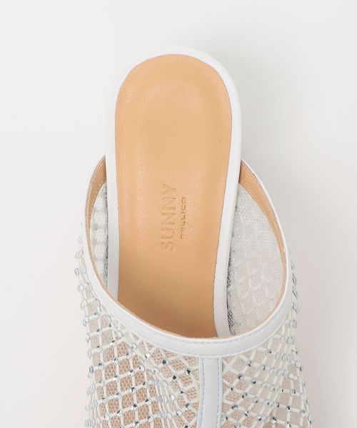 メッシュ素材のホワイトカラーにビジューを施したODETTE E ODILE別注のミュールサンダル。