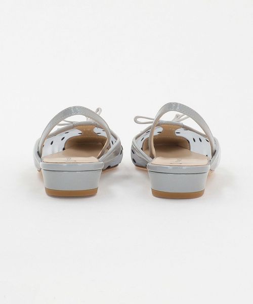 上品な印象の細めスクエアトゥと控えめなリボンモチーフがアクセントになったフラットシューズ。