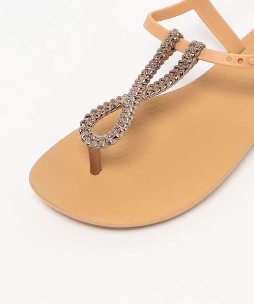 甲部分のツイストモチーフが足元を華やかに演出するサンダルです。