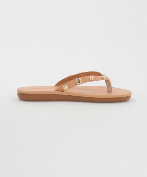 アッパーベルト部分にキャッチーなパーツが配された遊び心のあるトングサンダル。
