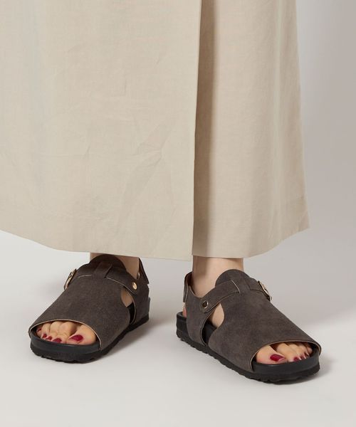 足を覆うカバータイプのデザインが安定感のある履き心地を実現するサンダルです。