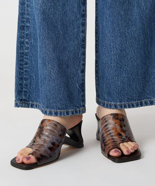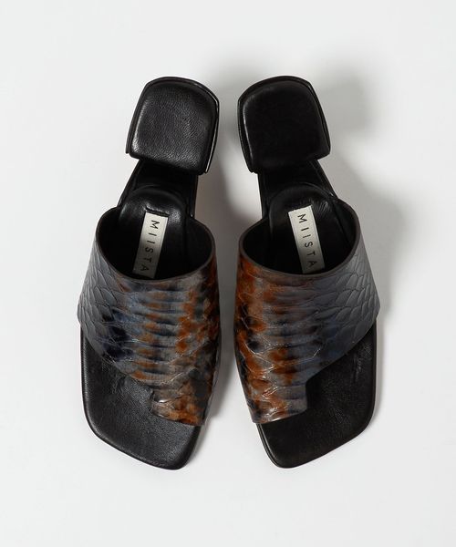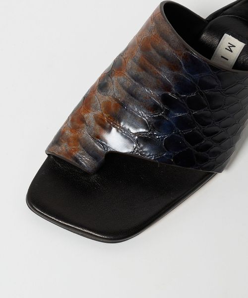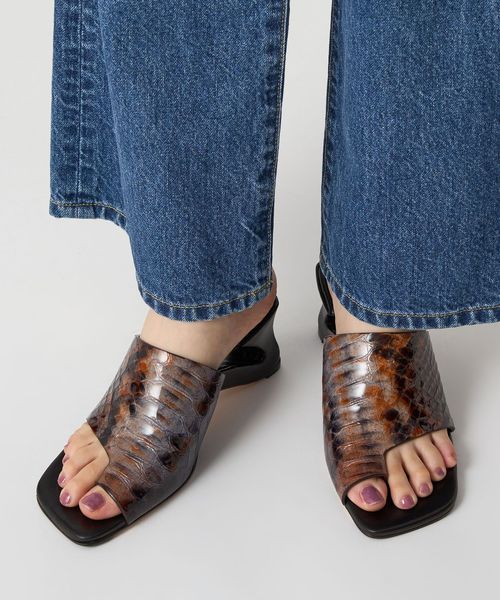 グラデーションのパイソンプリントが大人の辛口なムード漂うサンダル。