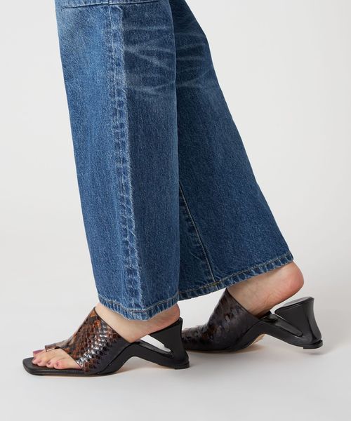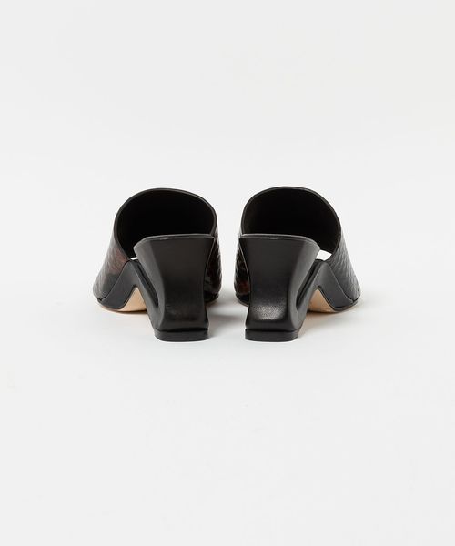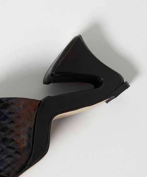 特徴的なヒールデザインが目を引くサムカバードサンダル