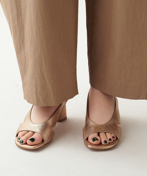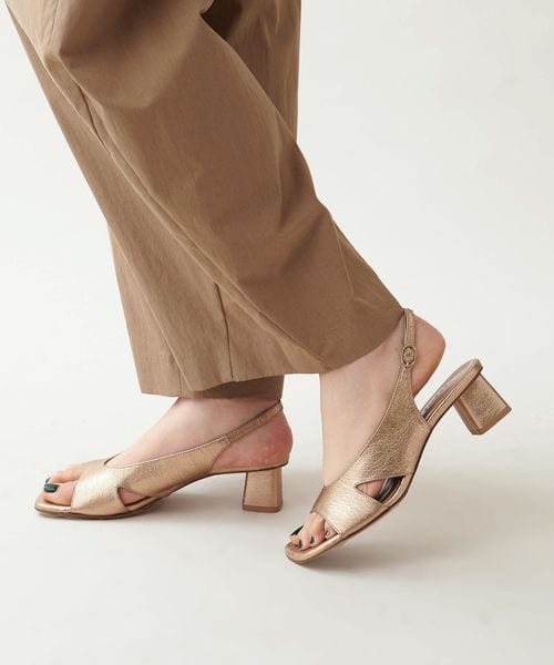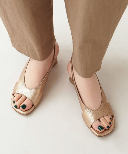 サイドに開きデザインをつくったバックストラップタイプのサンダルです。