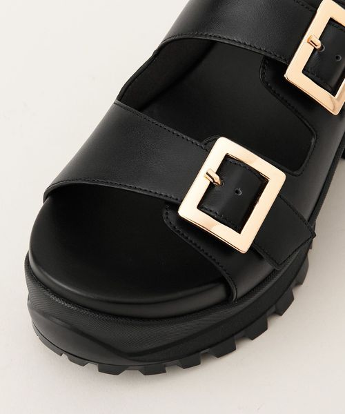 甲ベルトには大きめなバックルが付いており、カジュアル過ぎないモードな印象を与えます。