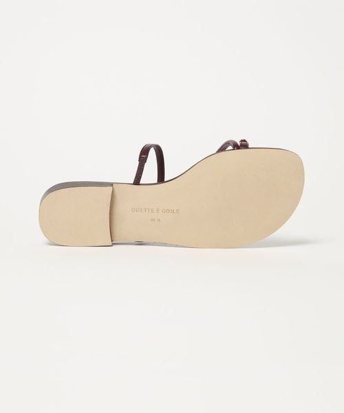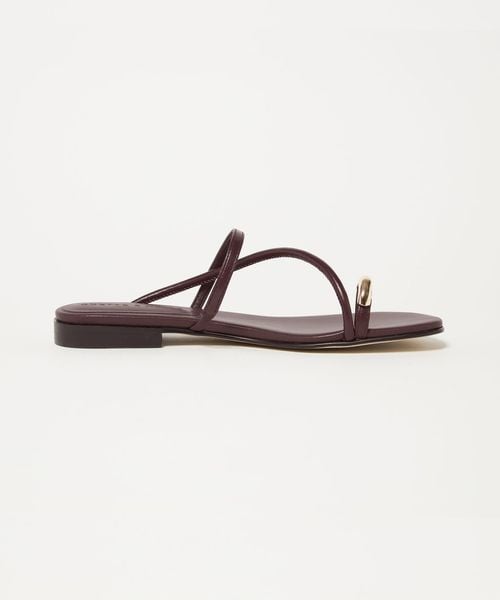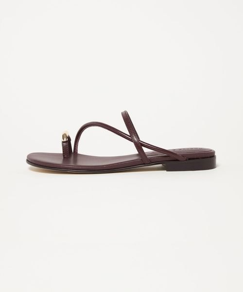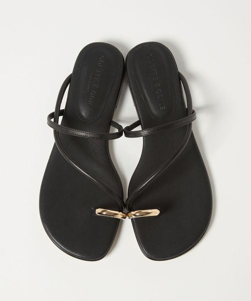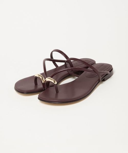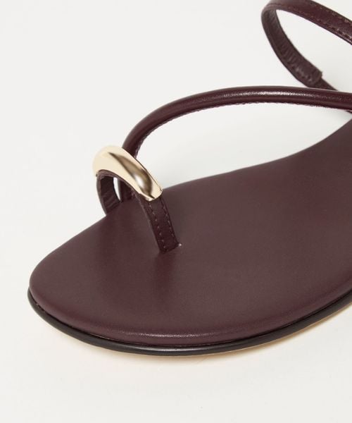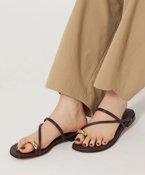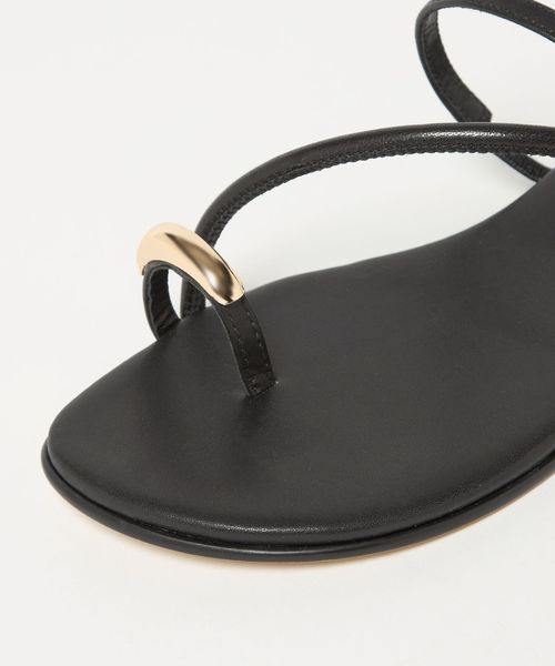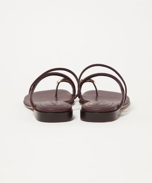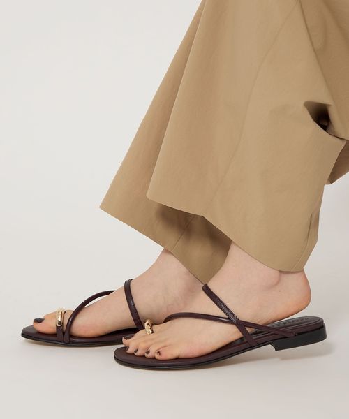 親指のレザーループの上にメタル飾りを付けたサンダルです。