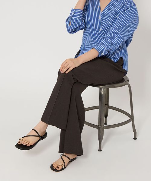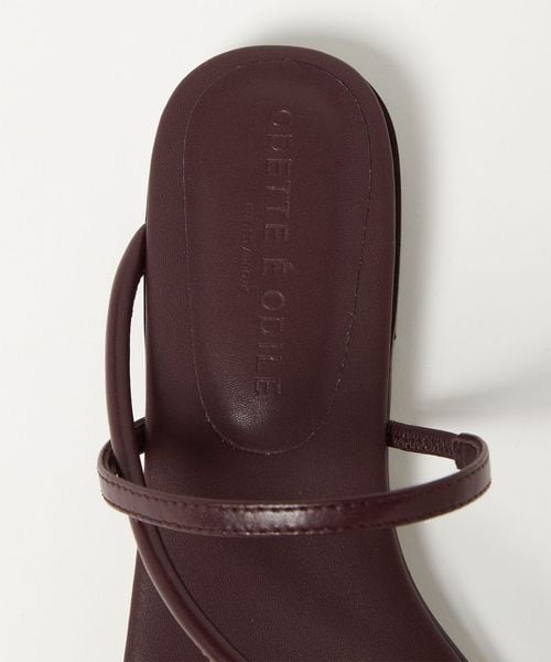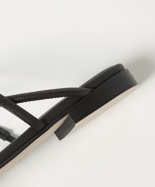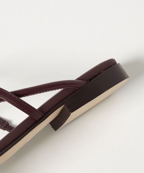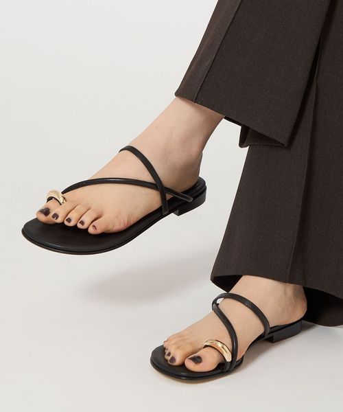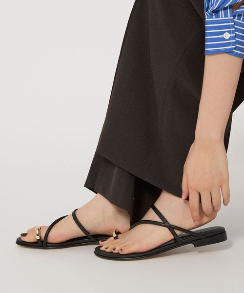 甲にかかる斜めのベルトが足をすっきり見せてくれ、フラットでありながら上品さも演出。