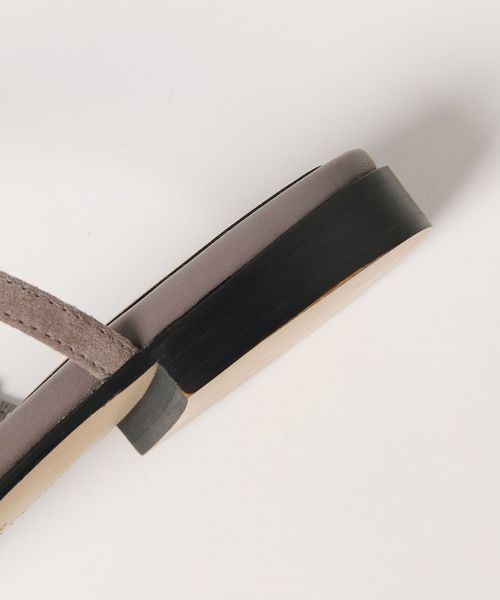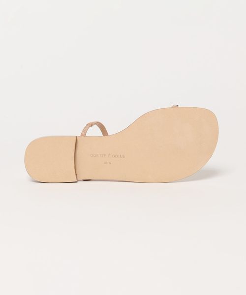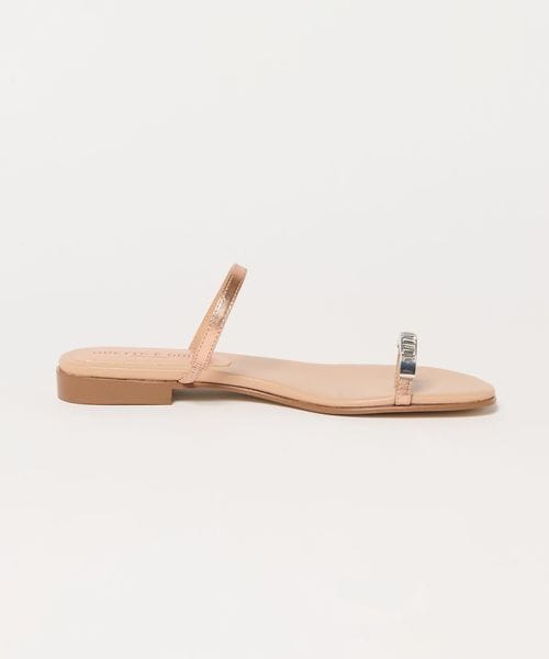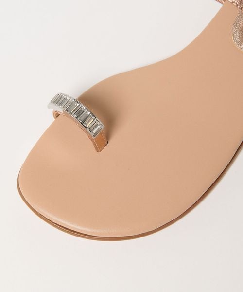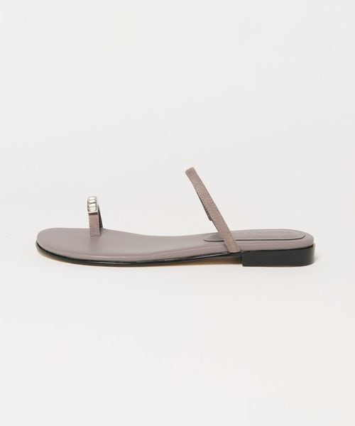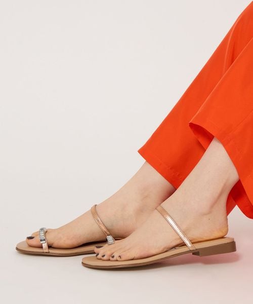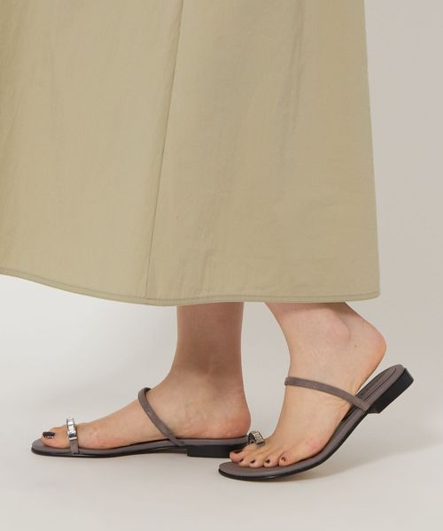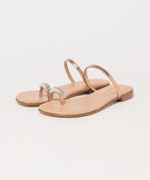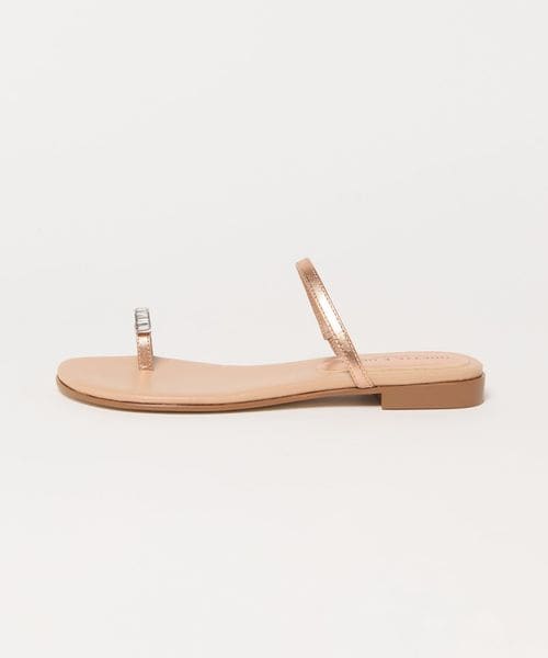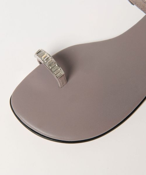 親指のレザーループに華やかなビジューを付けたサンダルです。