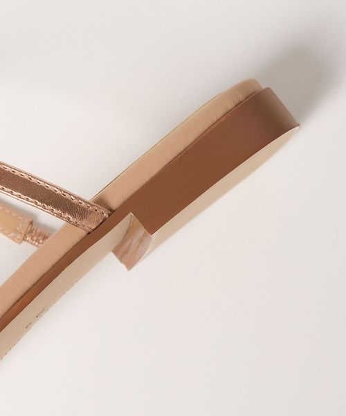 シンプルなフラットサンダルでありながら、カジュアルになりすぎず、洗練された雰囲気を漂わせます。