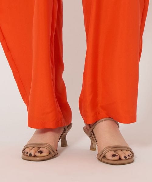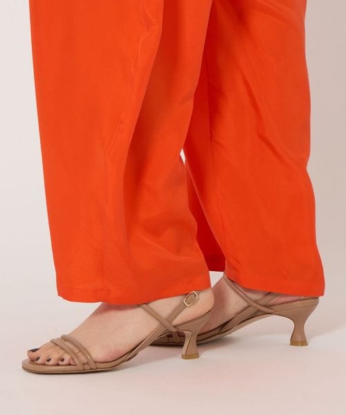 シンプルなデザインで、足元のほどよい肌見せ感が女性らしさを演出。