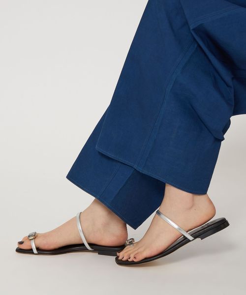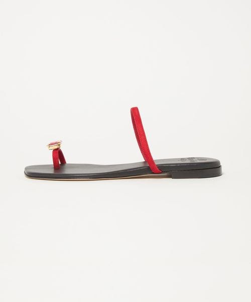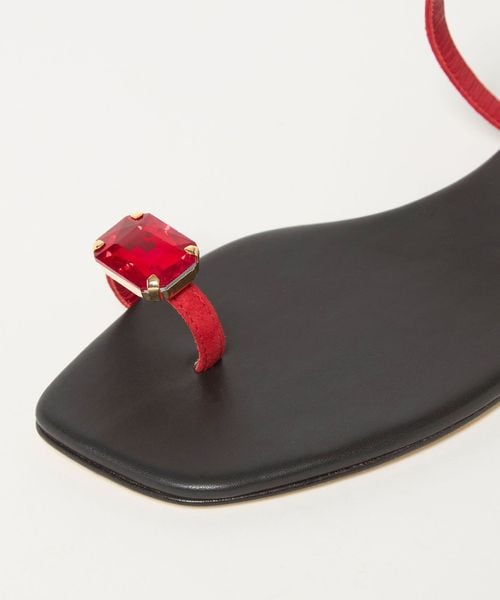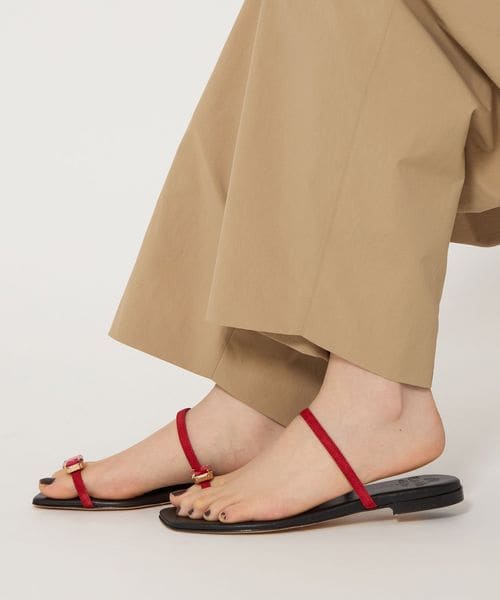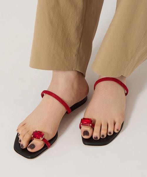 ブランドのアイコン的なデザインはトゥリングのビジューがポイントとなっており、ジュエリーを纏う様に履ける、存在感のある足元を演出します。