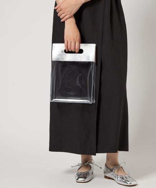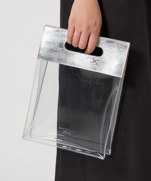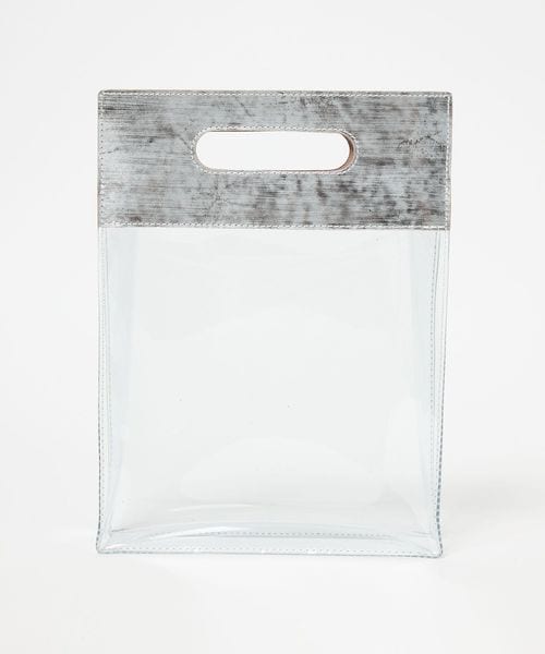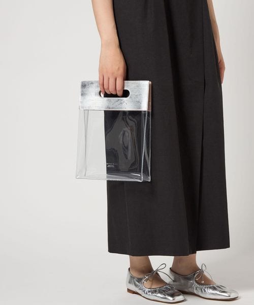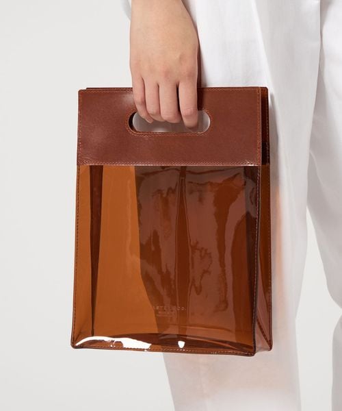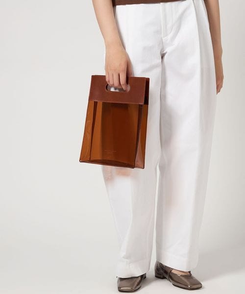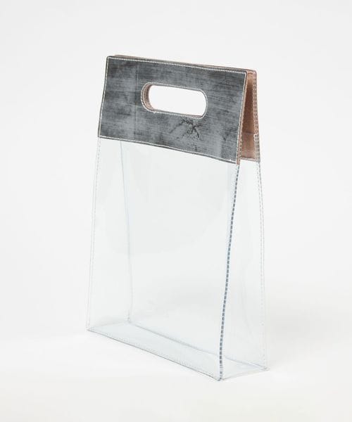 レザーの持ち手とクリアボディの異素材コンビネーションが、クリーンでスタイリッシュな印象をプラス。