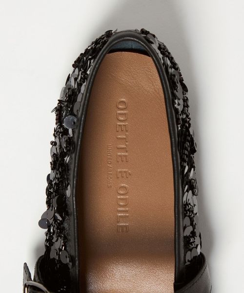 煌びやかなスパンコールとビーズで表現したフラワーモチーフを散りばめ埋め尽くし、足元に華やかさをプラスしたデザイン。