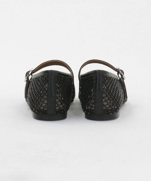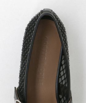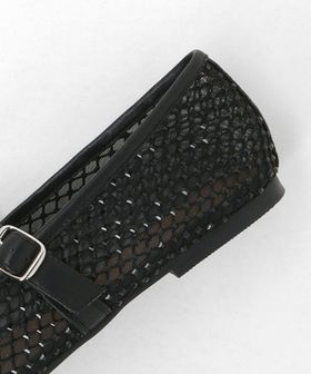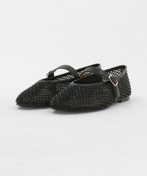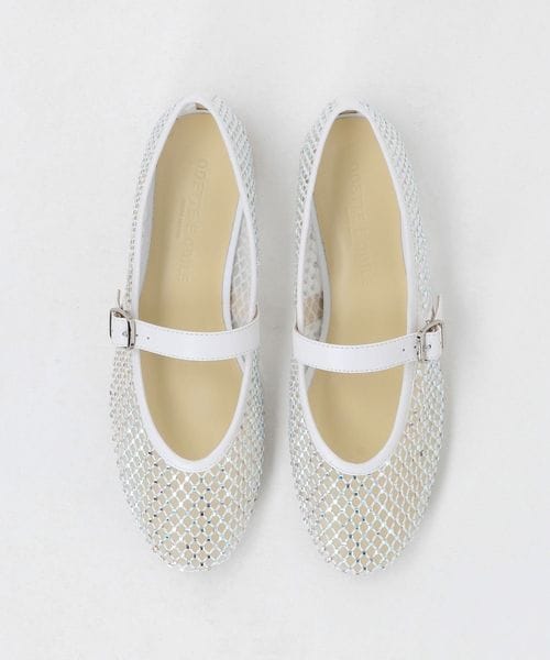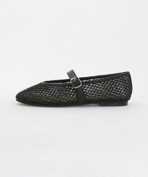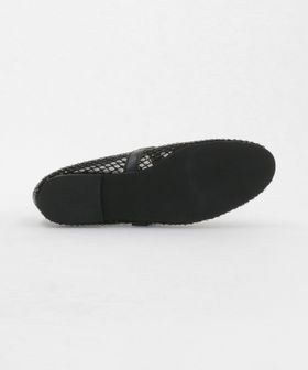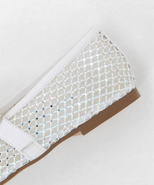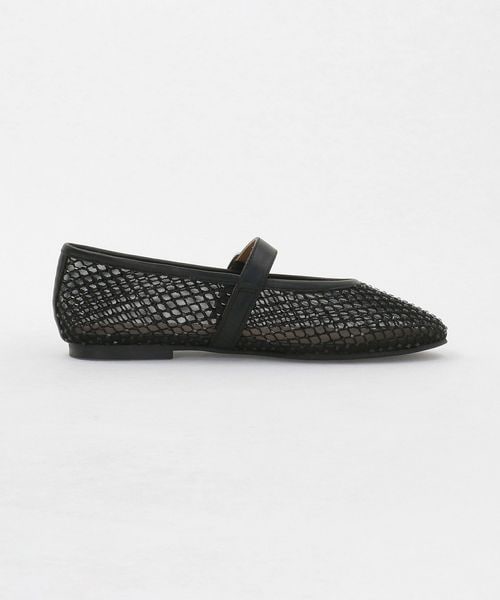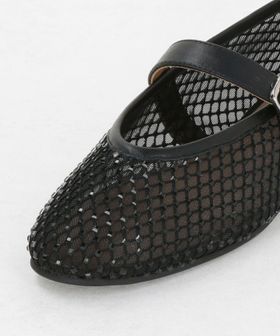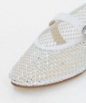チュールにビジューのついたフィッシュネットを貼り合わせた素材で透け感があり、シーズンムードをぐっと高めてくれる一足です。