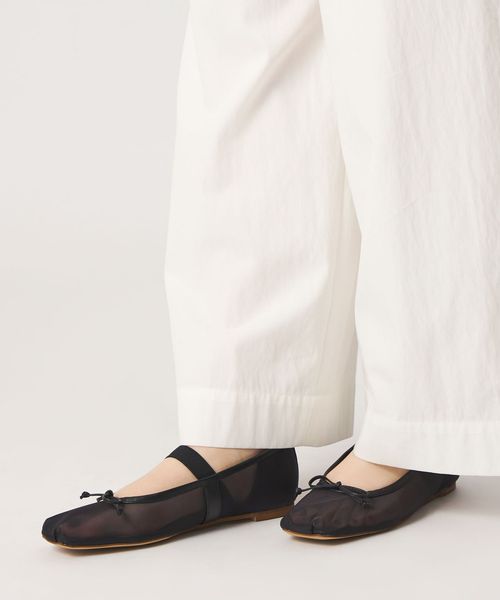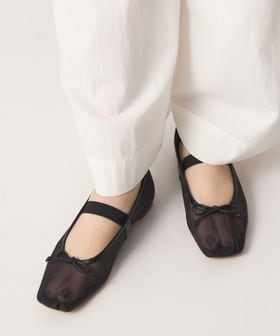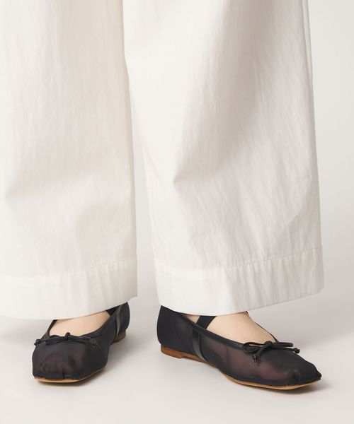 やや深めの履き口とスクエアのトゥ先が落ち着いた雰囲気を演出し、可愛くなりがちなバレエシューズをモードでトレンド感ある一足へと格上げ。