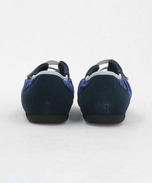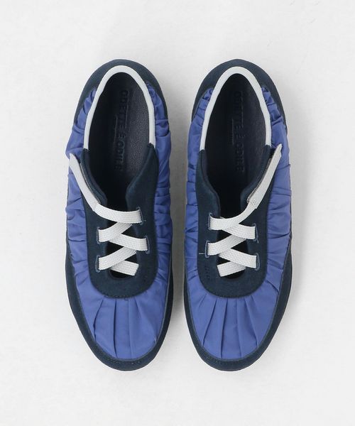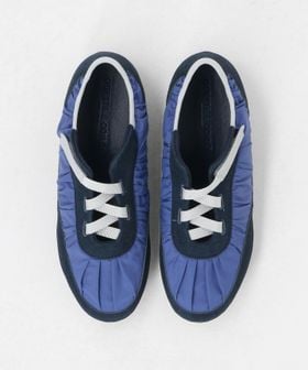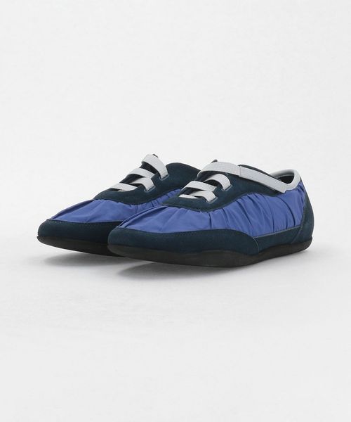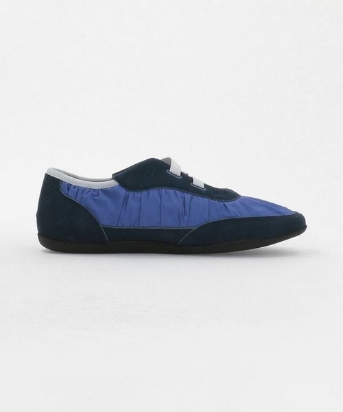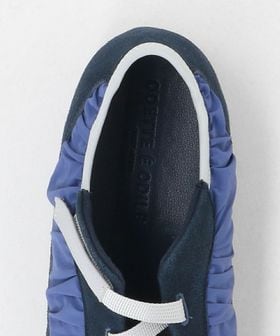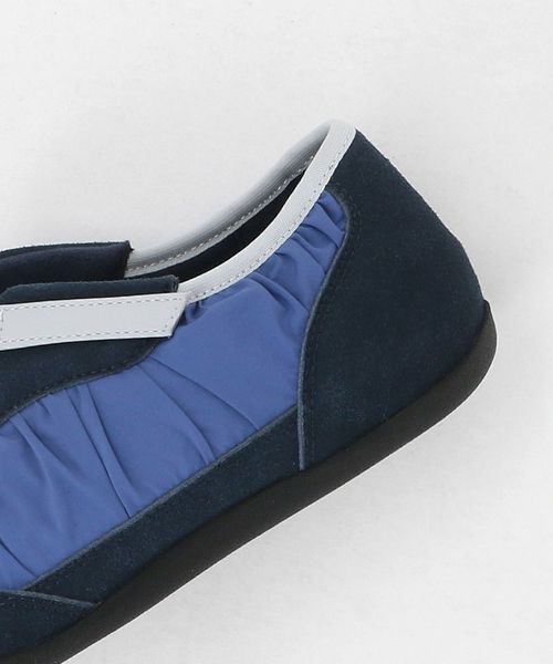 ギャザーの寄ったアッパーとすっきりとした薄型のフォルムがトレンド感ある一足です。