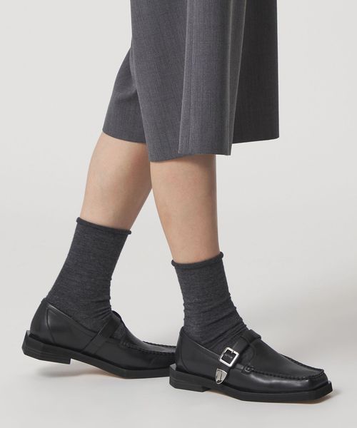 剣先金具がさりげないアクセントとなり、スタイリッシュな印象を演出する一足です。