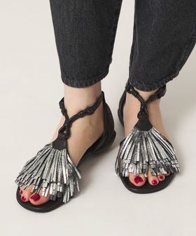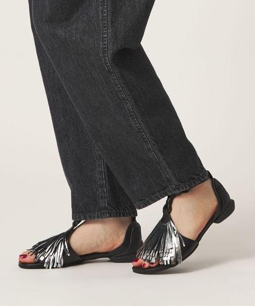 歩くたびに揺れるモードなフリンジと華奢なストラップのバランスが魅力のサンダル。
