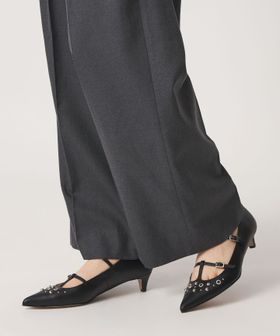 辛口なスタッズを効かせつつ、華奢な2本のスラップとキトゥンヒールを合わせて上品なバランスに仕上げました。