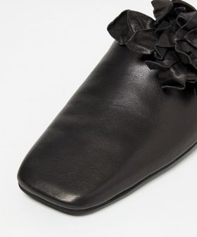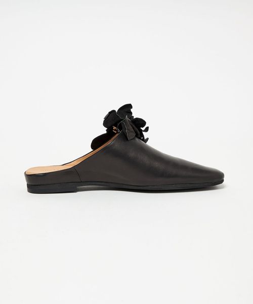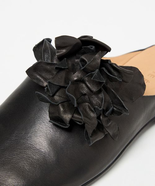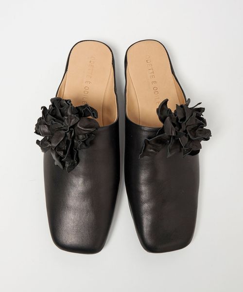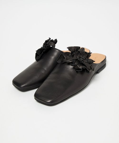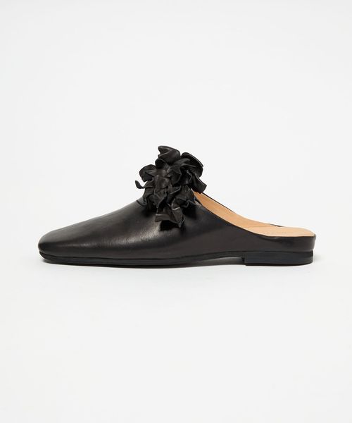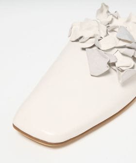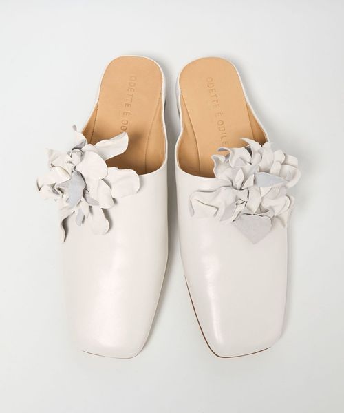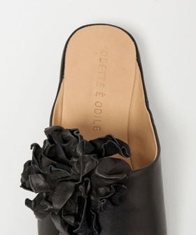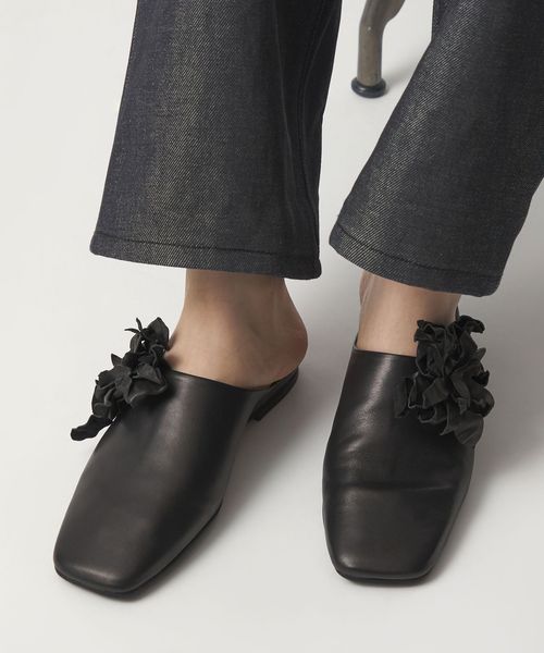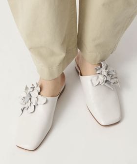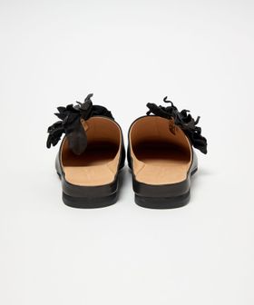 立体感のあるコサージュが目をひくミュールフラット