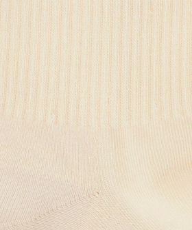 ベーシックなリブソックスにプリントされたブランドロゴがさりげないアクセント。