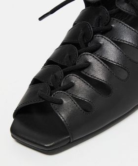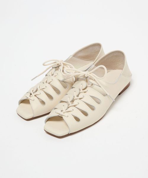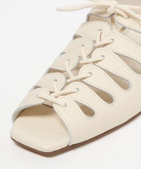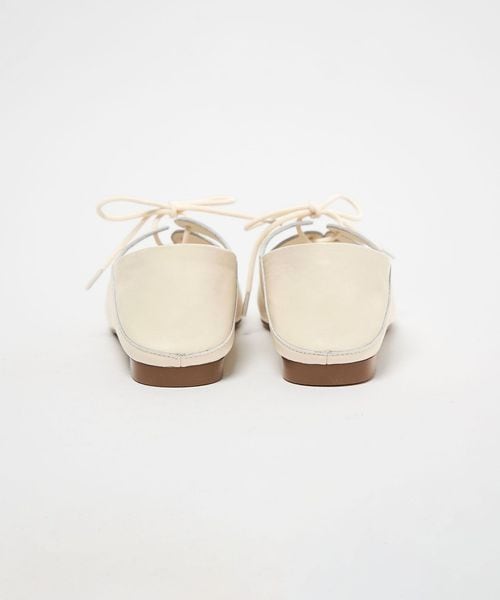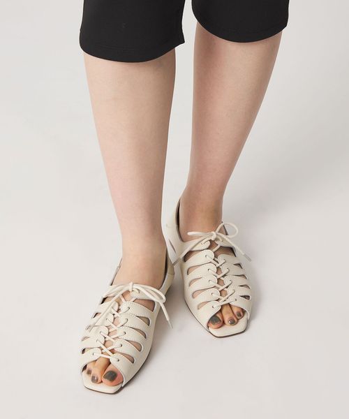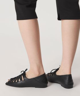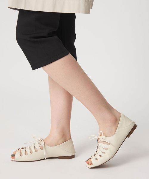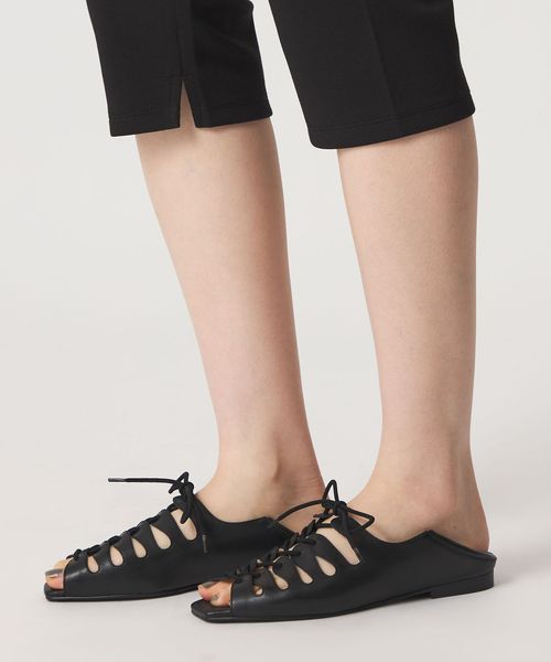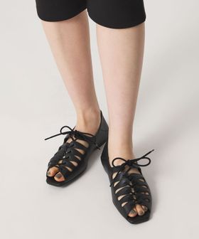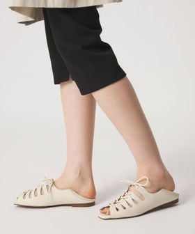 フィット感のある丸紐のためほどかずに着用でき、かかと部分を踏んでミュールとしても履ける2Way仕様。