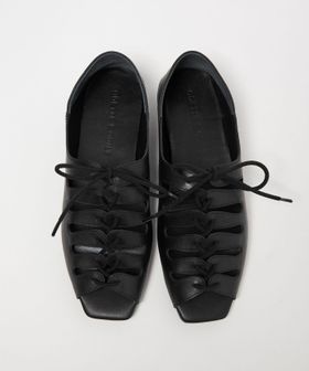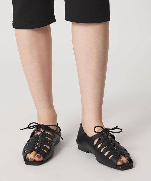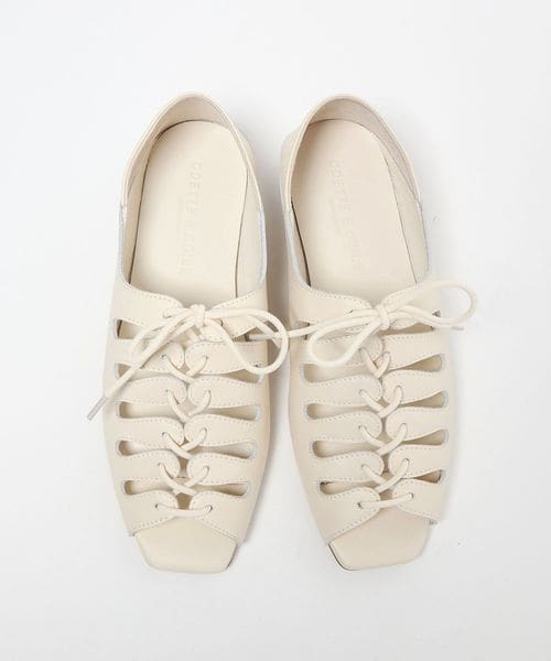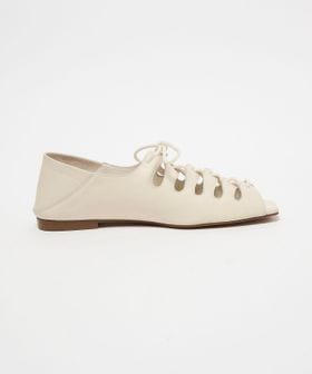 曲線でティアドロップラインをつくった甲深めのオープントゥフラット。